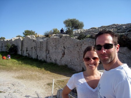 One of the highlights of the Democracy Walking Tour is the Pnyx lying in a park on a small rocky hill directly opposite and at roughly the same elevation as the Acropolis. In this big open field is where Athenians gathered as early as 500 BC to form popular assemblies. This small area held from 6,000 to 13,000 men which is why it is called Pnyx, Greek for “tightly packed together.” The Pnyx manifested the new principle isegoria meaning “equal speech” because every citizen had the equal right to debate matters of policy.