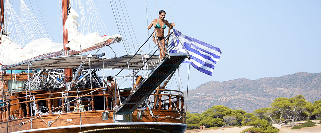 In a country with so many islands, one sees many ships at sea. What sets EcoAthens apart from the crowd is our innovative concept to include active and leisure activities on our cruises, such as hiking, biking, culinary classes, yoga, wine tasting and so many other events that enrich your Greece experience. “Toys” on board include bikes, fishing gear, snorkeling gear, sea kayaks. Our history as long time tour operators provide us the professional expertise to offer these additional activities to your sailing experience.