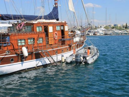 Sail aboard the Apollon, a handcrafted traditional wooden sailing yacht, 25 meters long (or similar yacht). The yacht has seven cabins with en suite bath, a fully equipped galley and indoor salon. Four cabins have double beds with an upper berth and the fifth has double bed two upper berths. Two cabins have two double beds. The Apollon’s average speed is ten knots per hour. The yacht has a crew of four with long sea-faring experience. The yacht’s chef makes all meals on board which feature the healthy Mediterranean cuisine with Greek food at its centerpiece.