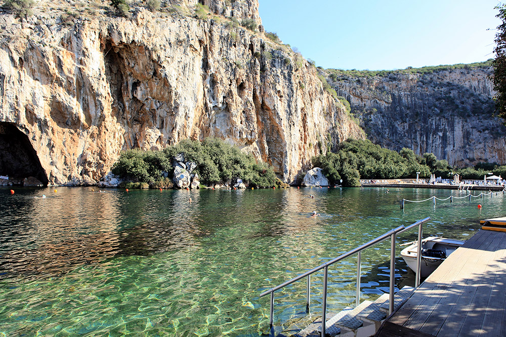 Swimming in Lake Vouliagmeni is an invigorating experience. Its waters are full of healing minerals such as potassium, natrium, lithium, ammonium, calcium, ferrum, chloride and iodine which give relief to bone and muscle ailments. Apart from the Lake’s health benefits, it is also a mystical marvel due to its labyrinthine underwater cave. Although 3,123 meters have been explored, the cave’s end remains elusive. The cave consists of fourteen tunnels, one of which measures 800 meters, said to be the longest in the world.