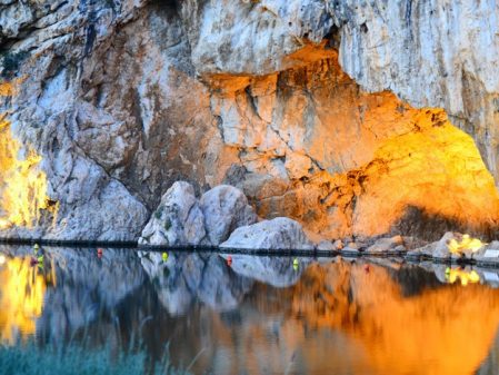 This day long activity takes place at the thermal waters of Lake Vouliagmeni, a word meaning “sunken” in reference to its previous life as a large cavern that collapsed following an earthquake. The lake, a geographical phenomenal, is part of the National NATURA 2000 list and as a Site of Outstanding Natural Beauty by the Ministry of Culture. Lake Vouliagmeni is located on the Attica coast, 25 kilometers from central Athens.